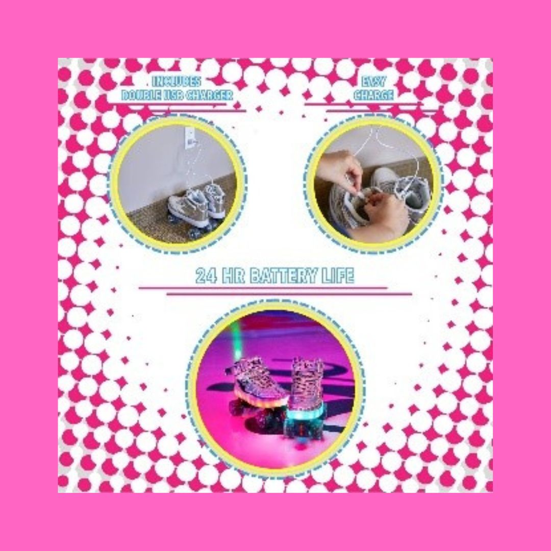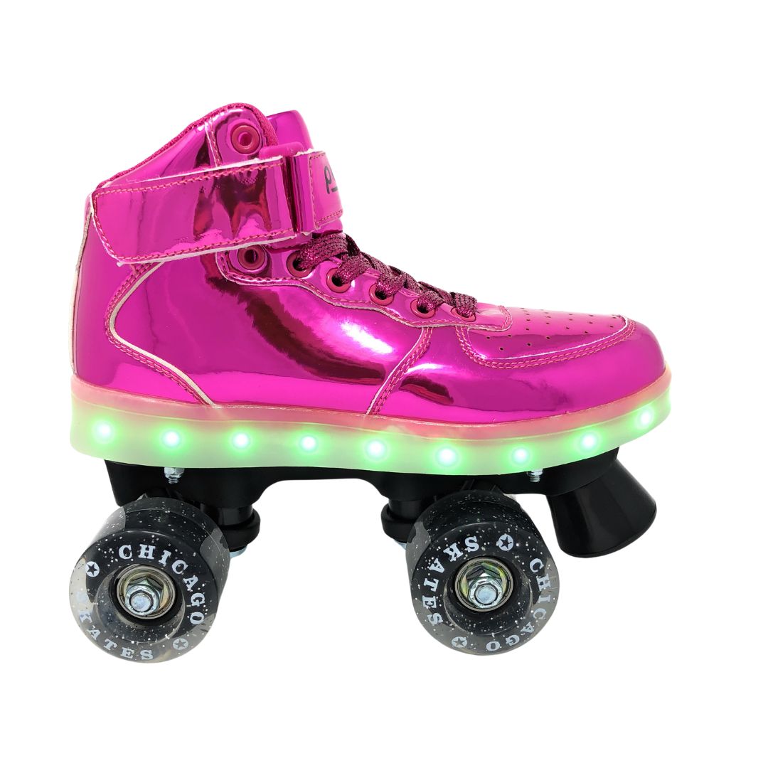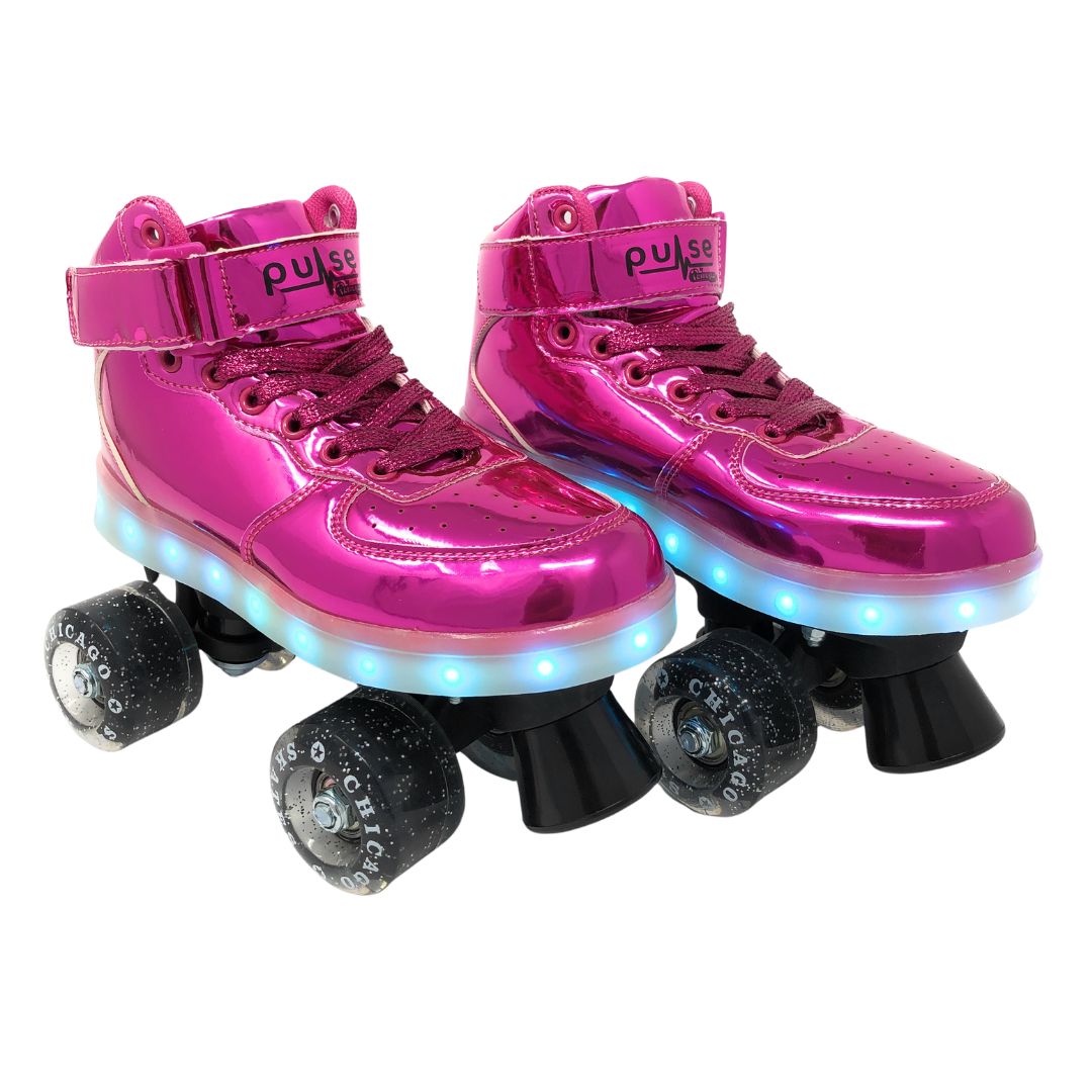 - LIGHT-UP SKATES: Roll in style with the new Pulse Light-Up Skates by Chicago Skates. Stylish quad skates with high-top sneaker design and flashing rechargeable LED lights in the outsole.