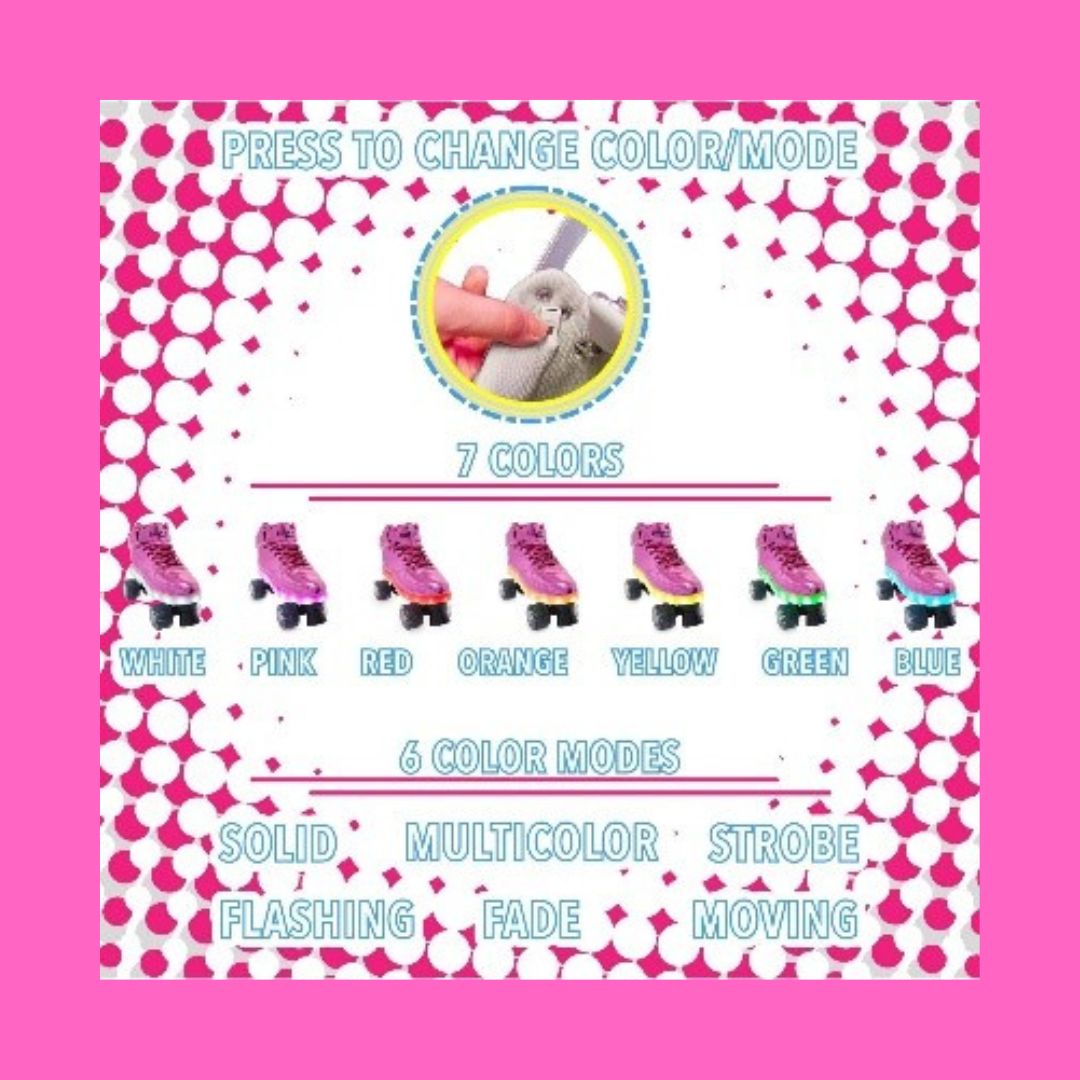 - LIGHT & COLOR OPTIONS: Featuring 6 flashing modes and 7 different colors, these unique skates are sure to get heads turning! Sole rechargeable via a USB cord (included).