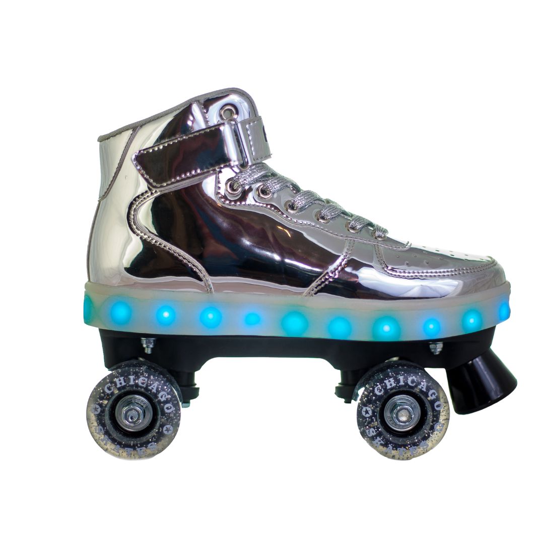 - LIGHT-UP SKATES: Roll in style with the new Pulse Light-Up Skates by Chicago Skates. Stylish quad skates with high-top sneaker design and flashing rechargeable LED lights in the outsole.